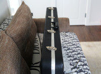 Ted McCarty, ancien président de GIBSON USA, un hommage de taille avec cette guitare PRS dont le premier exemplaire avait été offert à Ted McCarty en 1994. Un procès intenté par GIBSON envers PRS a été perdu par GIBSON, pour la petite histoire. Corps en acajou. Table : érable flammé (flamed maple). Corps légèrement épais pour plus de sustain. Etui rigide PRS fourni.